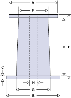 We currently have 12 sizes with bottom flanges (B) from 3.15"/8cm to 18.1"/46cm and overall lengths (E) from 4.37"/11.1cm to 24.8"/63cm.